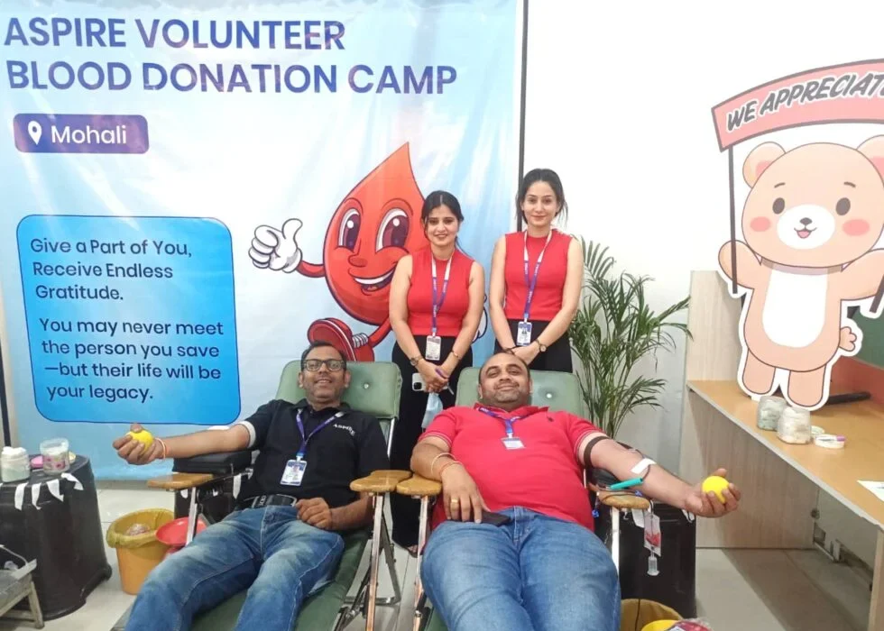 A Blood Donation Camp was organized at Aspire Teleservices in Mohali on June 10, 2025, with the objective of promoting voluntary blood donation and supporting patients who require life-saving transfusions. Employees and staff members actively participated in the camp, demonstrating their commitment to social responsibility and contributing to this noble cause.
